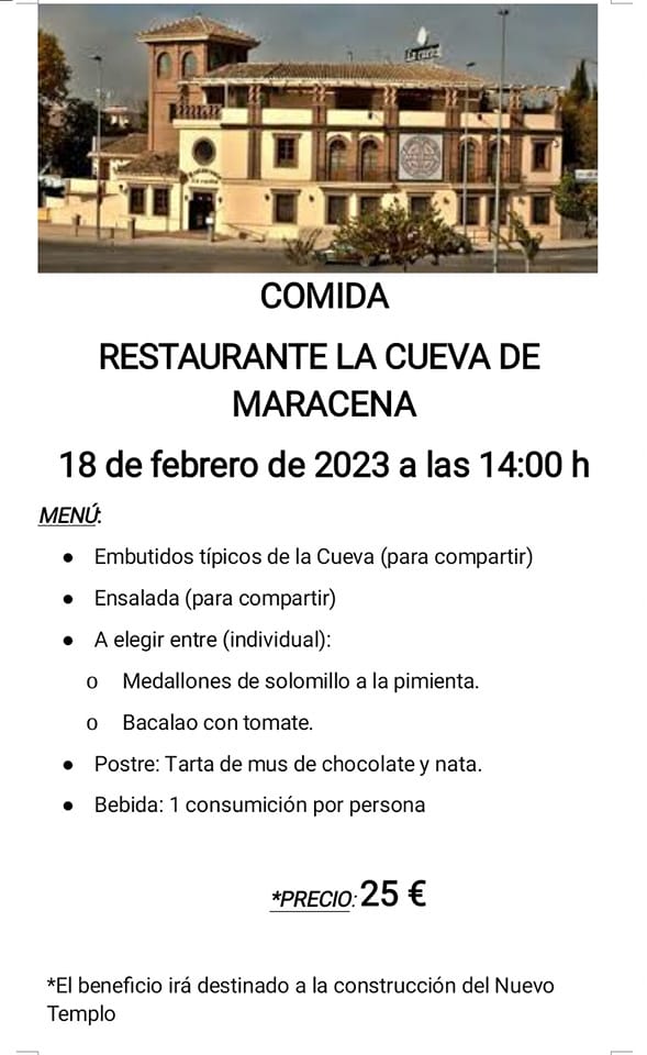 La Parroquia Espíritu Santo de Granada (España) organiza este sábado día 18 de febrero, a las 14.00 horas, una comida solidaria para recaudar fondos para la construcción del nuevo templo. El donativo por el menú es de 25 euros, aunque las personas que lo deseen también pueden colaborar en el número de cuenta destinado a tal fin (ES70 0075 0010 0806 0635 4187) o a través de Bizum (Código 05750).