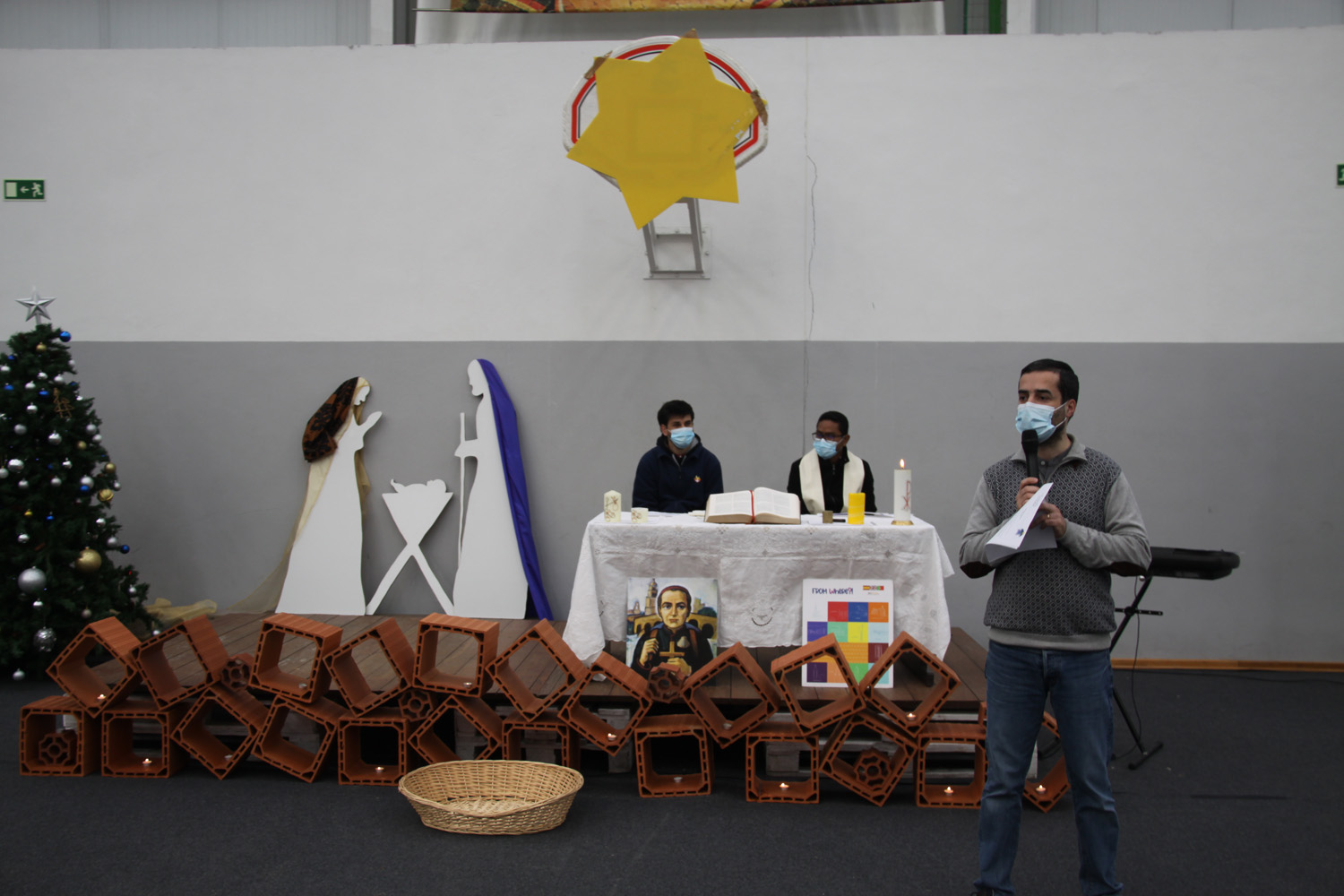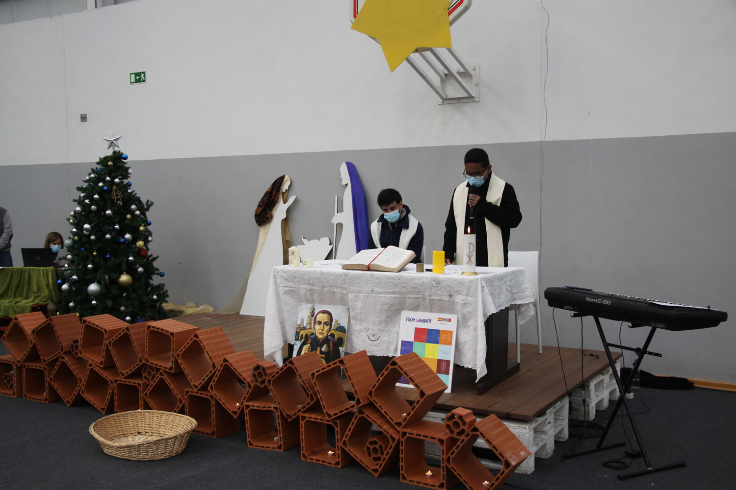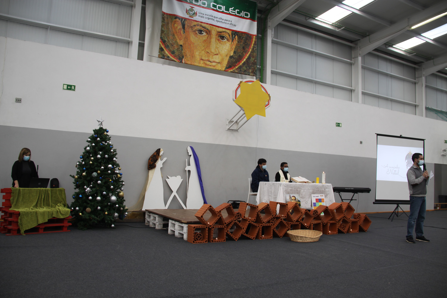 En el momento del ofertorio, de forma simbólica, cada delegado y/o subdelegado de clase colocó cerca del Altar algunos alimentos de sus respectivas cestas de clase, ya que, en las últimas semanas, se llevó a cabo en el CIC una campaña de recogida de alimentos para ayudar a las familias necesitadas de nuestra comunidad – ¡Esto es Navidad! – Cuanto más humanos seamos, más cerca de Dios estaremos.