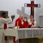 At 7.00 a.m., a time of Eucharistic adoration took place, attended by a good number of missionaries. At 7.30 a.m., the Mass of the Holy Spirit was celebrated, invoking the gift of discernment as the Chapter entered today into the electoral phase. The celebration was presided over by Fr Pedro Belderrain. Concelebrating were Fr. Lee Lionel Malunga, from Zimbabwe, the most recently ordained priest of the Province, and Deacon Lemuel Paul Tuvilla, ordained less than a month ago.