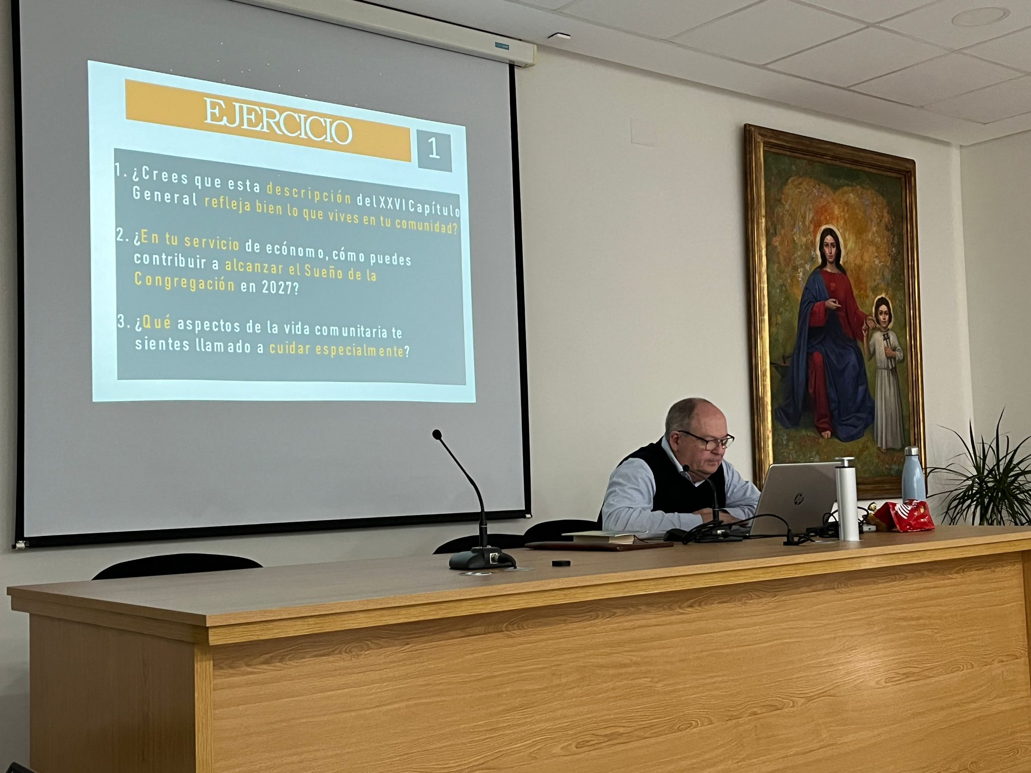 The afternoon began with an invitation to share in common what was discussed in small groups. Once finished, there was a new presentation on the economy in the Congregation in which some points of interest were highlighted to help a better service as treasurers in the different communities, at the same time that some practical aspects to take into account were underlined. After a short break, the work session was resumed with a video giving an overview of the provincial economy. The first day of the meeting ended with a dialogue and exchange of views on other issues related to the provincial economy.