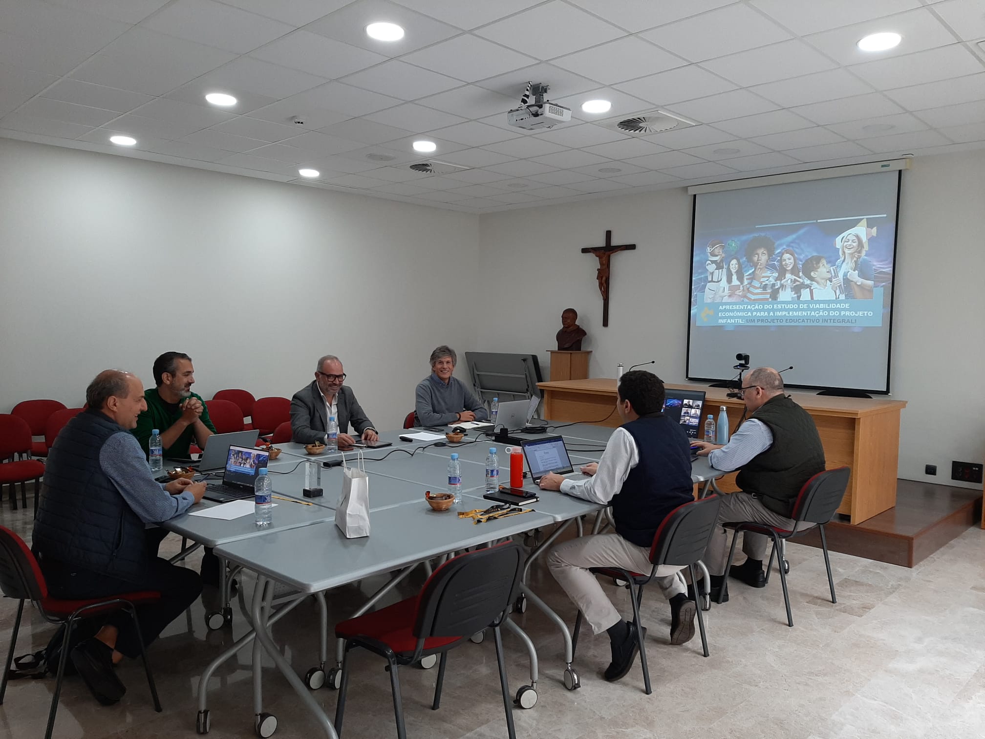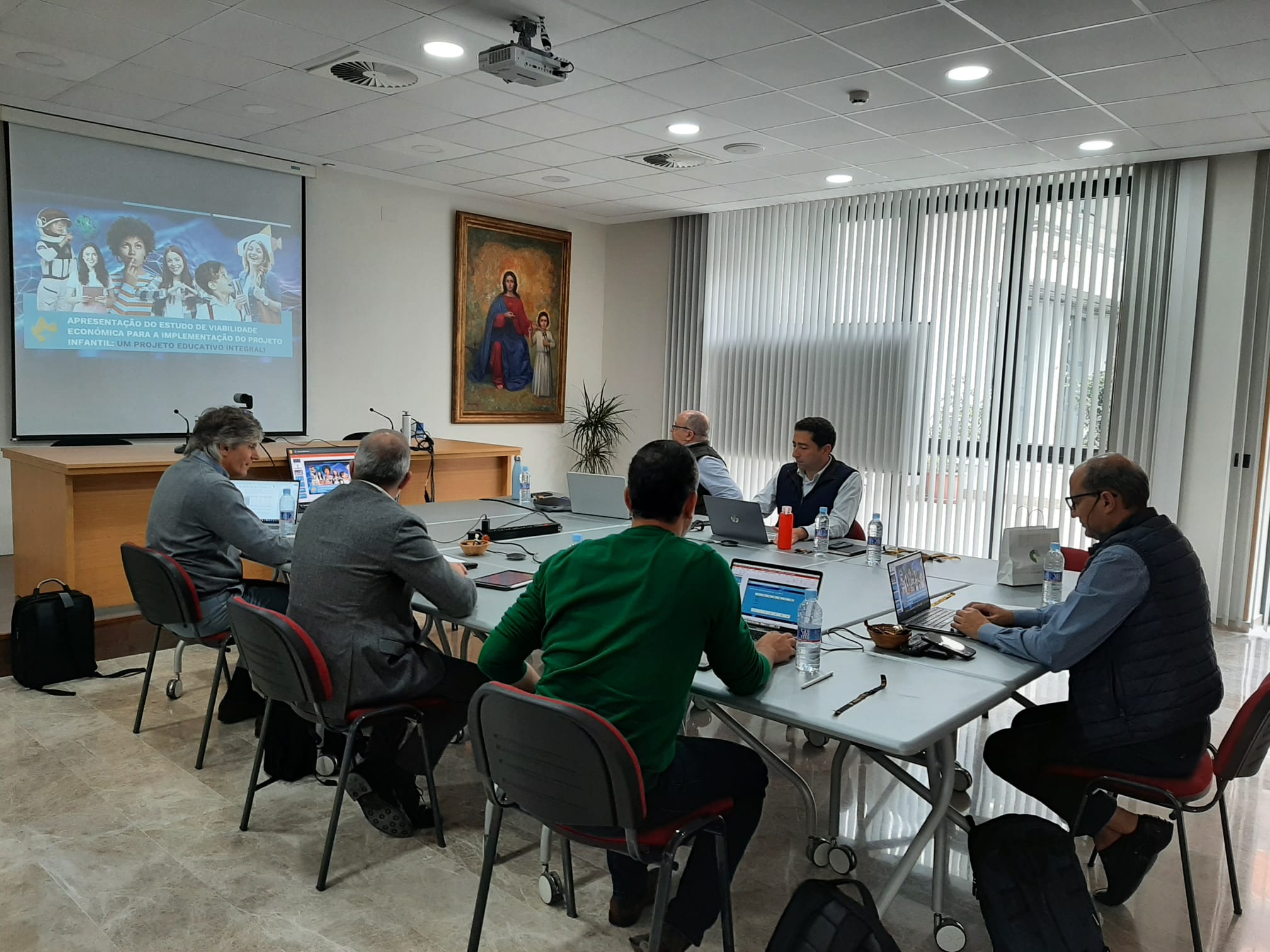 The members and advisors of the board of directors of the IECIC (titular of Colégio Internato Claret, Carvalhos), met with the Provincial Government. Most of those attending the meeting were present at the Provincial Curia, although there were also online connections.