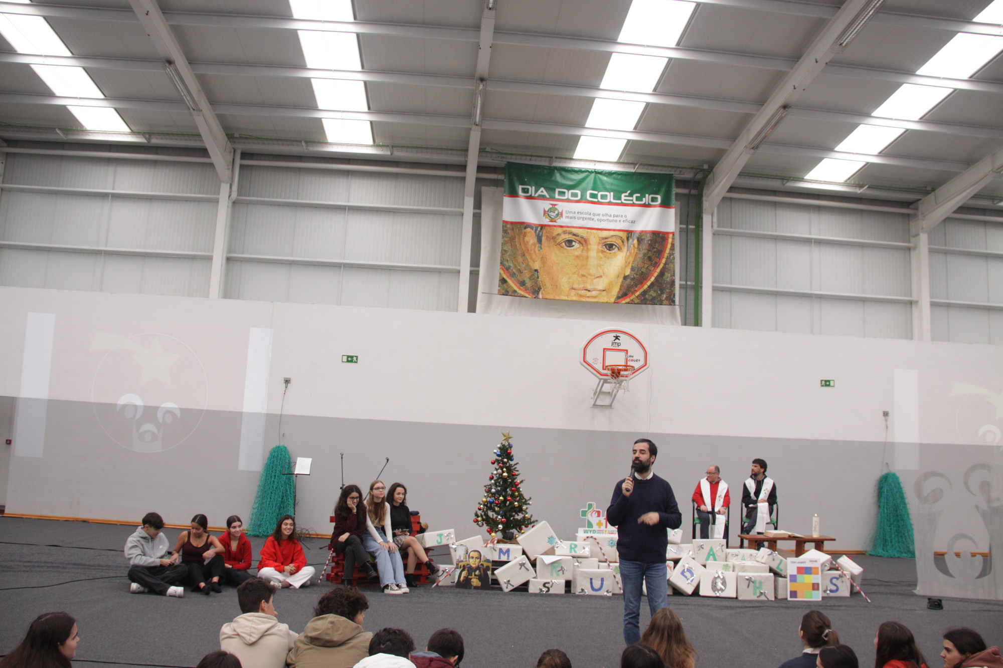 A Celebração de Natal, que teve lugar no Pavilhão Desportivo, contou também com a presença de dois membros da equipa do Ministério da Juventude Vicentina espanhol e português, respectivamente, os PP. Martín Areta e Vitor Portugal, CMF, que presidiram à celebração.