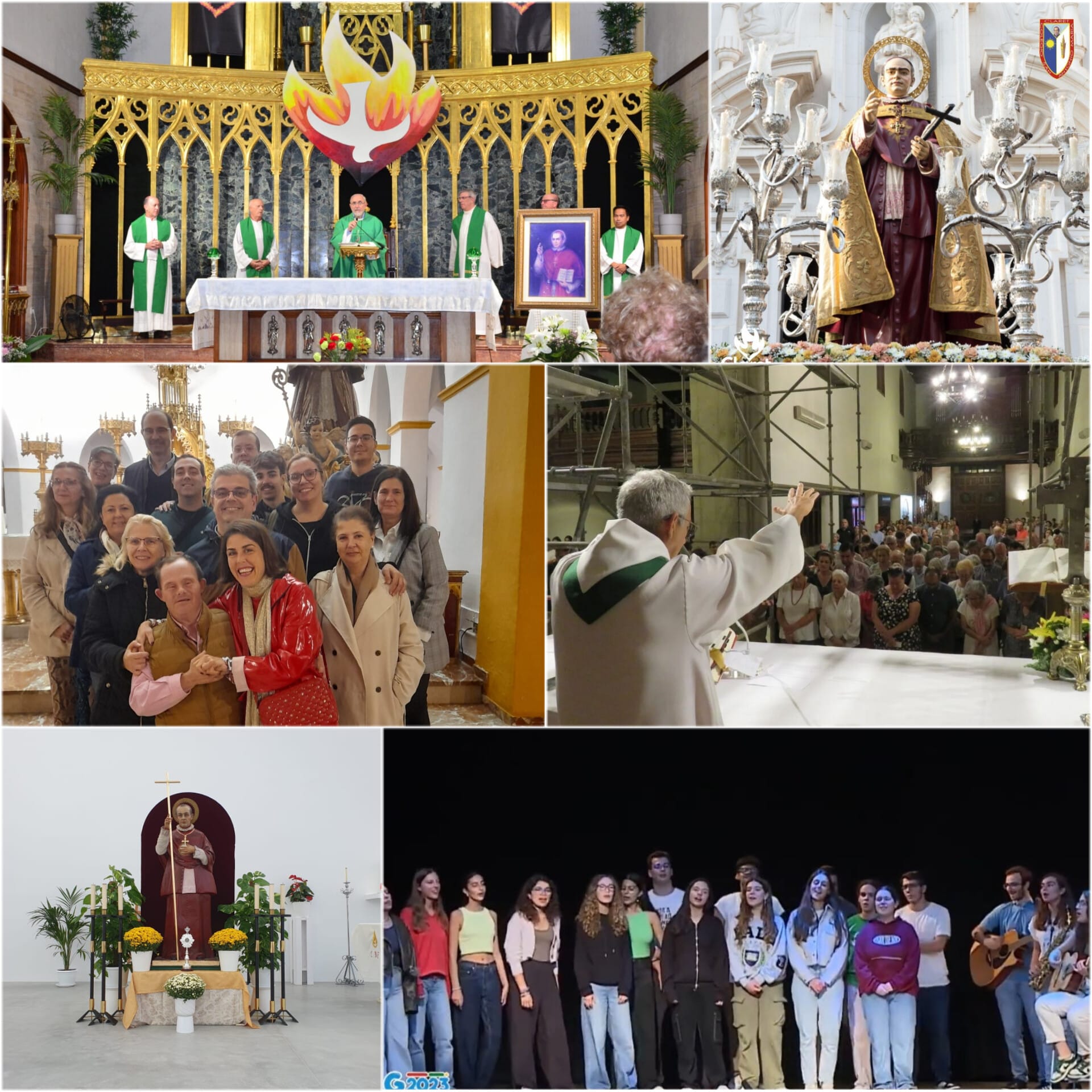 Paróquia do Espírito Santo de Granada. De 21 a 24 de outubro, dia da sua solenidade, a paróquia celebrou um tríduo em sua honra, onde se rezou com grande entusiasmo e força para que a mesma caridade ardente que inflamava o seu coração lhes permitisse continuar com intensidade e eficácia o seu trabalho apostólico. Além disso, este ano foi especial porque pudemos celebrar a festa do Padre Claret no novo templo, inaugurado no início de setembro, onde um bom número de paroquianos e amigos vieram acompanhar-nos neste dia importante para a nossa comunidade.