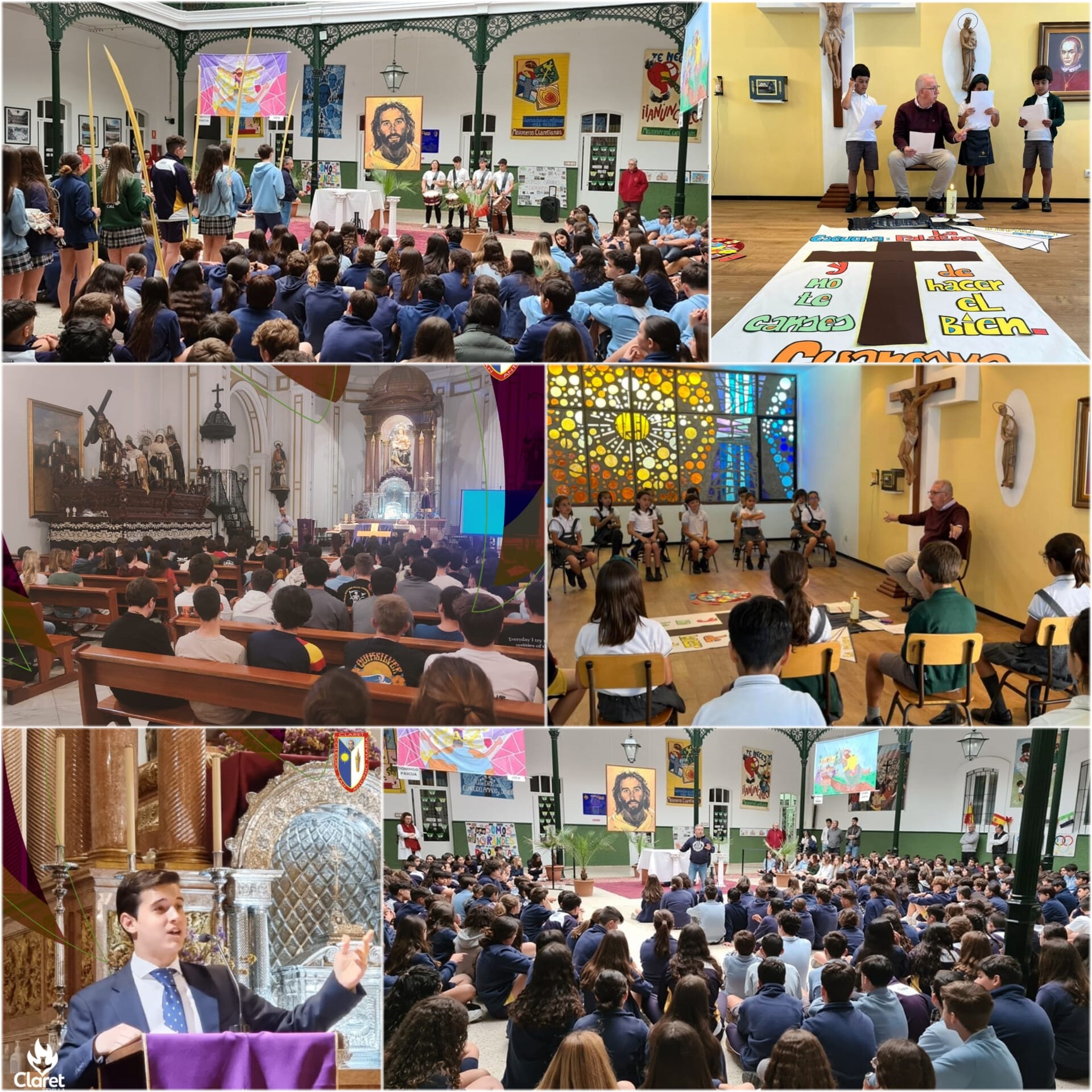 Escola Claret em Sevilha. Na Igreja Paroquial de San Antonio María Claret, realizou-se a Proclamação da Semana Santa, que nesta ocasião foi dada por Pablo Sánchez-Palencia, com uma introdução de Lola Cascajo e Ignacio Sabater. Além disso, todo o 1º Bacharelato teve um momento de reflexão e celebração ao lado da procissão da Irmandade da Missão, que se processou pelas ruas de Sevilha na Sexta-feira de Dores.