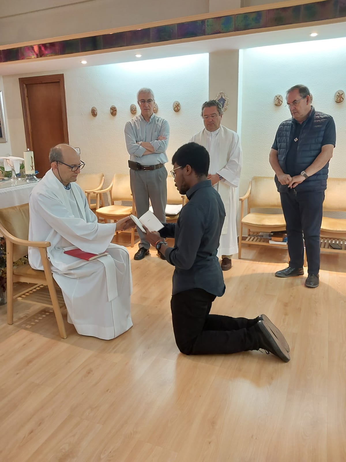 Así, el propio día 24 de octubre, solemnidad de San Antonio María Claret, renovaron la profesión religiosa los estudiantes Anthony Ho Quoc Vu, Lemuel Paul Tuvilla Ayuyang y Vitor Emanuel Magalhães Barbosa. Los dos primeros, Vu y Lemuel, lo hicieron acompañados por la comunidad de Granada y de manos del P. Félix Jesús Martínez Lozano cmf, prefecto Provincial de Espiritualidad y Formación. Vitor fue acompañado por varios miembros de su comunidad de Carvalhos-Colegio y renovó de manos del superior de la Comunidad, el P. Vitor Manuel Pereira Pinto cmf. Unos días antes y de manos del Superior Provincial, P. Carlos Alberto Candeias cmf, renovó en su comunidad de Claret-Sevilla el estudiante Tiago Emanuel Afonso dos Ramos.